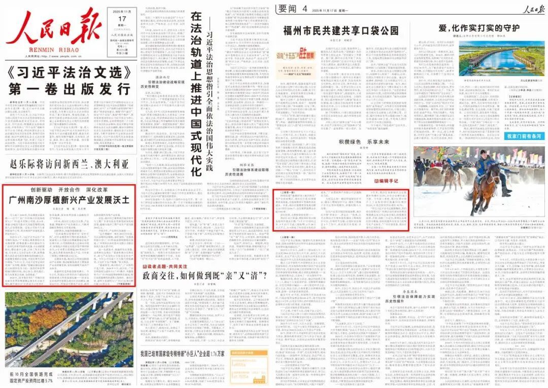 11月17日,《人民日报》头版文章《广州南沙厚植新兴产业发展沃土》将目光投向湾区之心。南沙区龙穴街道以“保姆式”服务推动美胶(MEIJOY)国际供应链基地项目快速落地的实践,成为南沙厚植新兴产业发展沃土的一个缩影,相关事迹登上国家级媒体的重要版面。